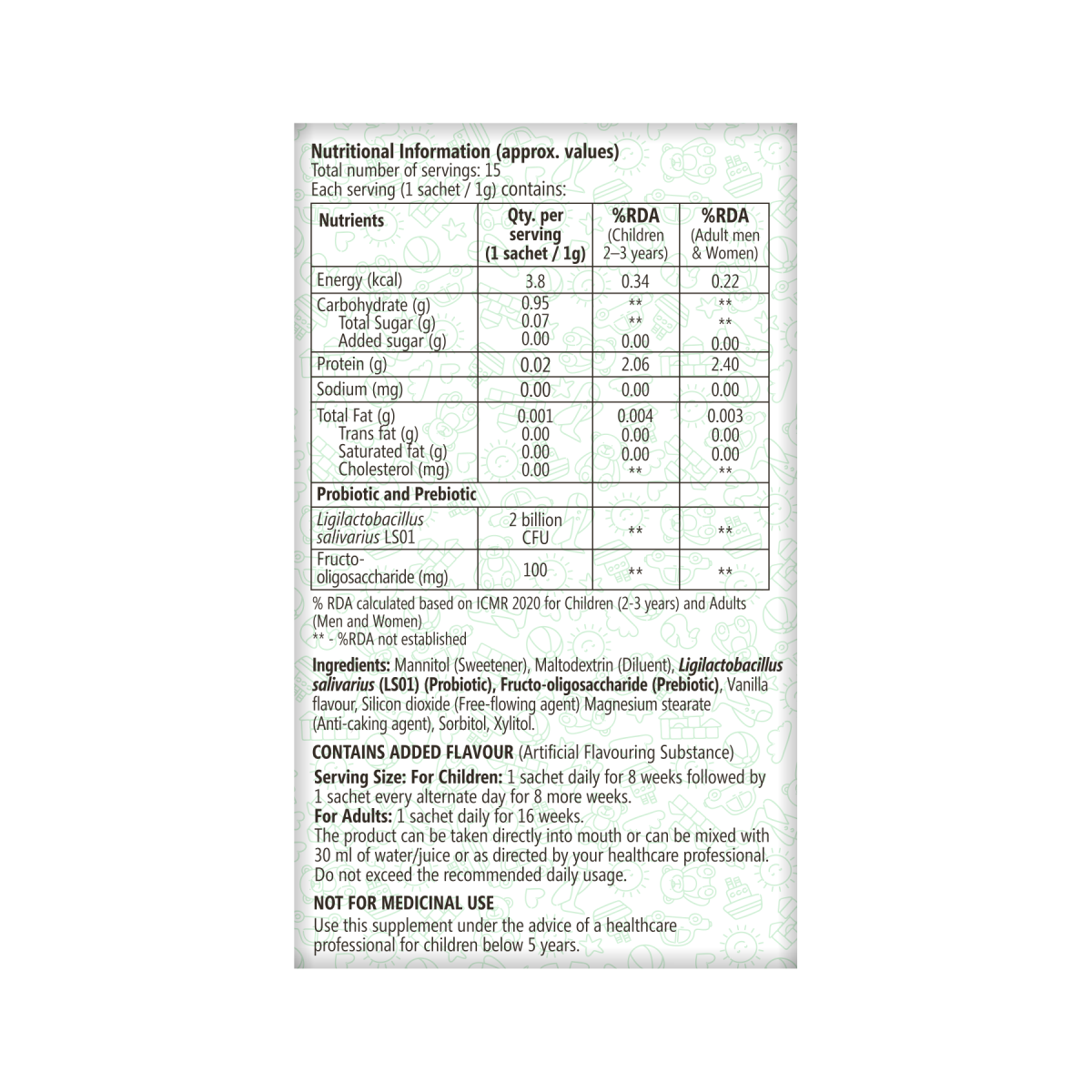 • Empty the contents directly in the mouth or mix it in 30ml of water/juice till the powder dissolves completely.